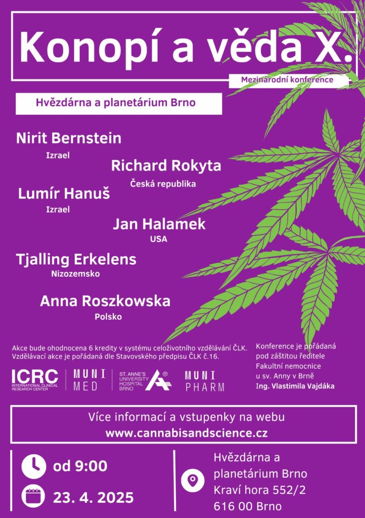| 13:55–14:05 | Šulcová Alexandra | Terapeutické indikace CBD |